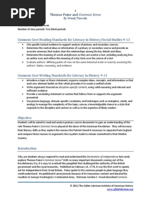 Thomas Paine And Common Sense Pdf American Revolution Thomas Paine